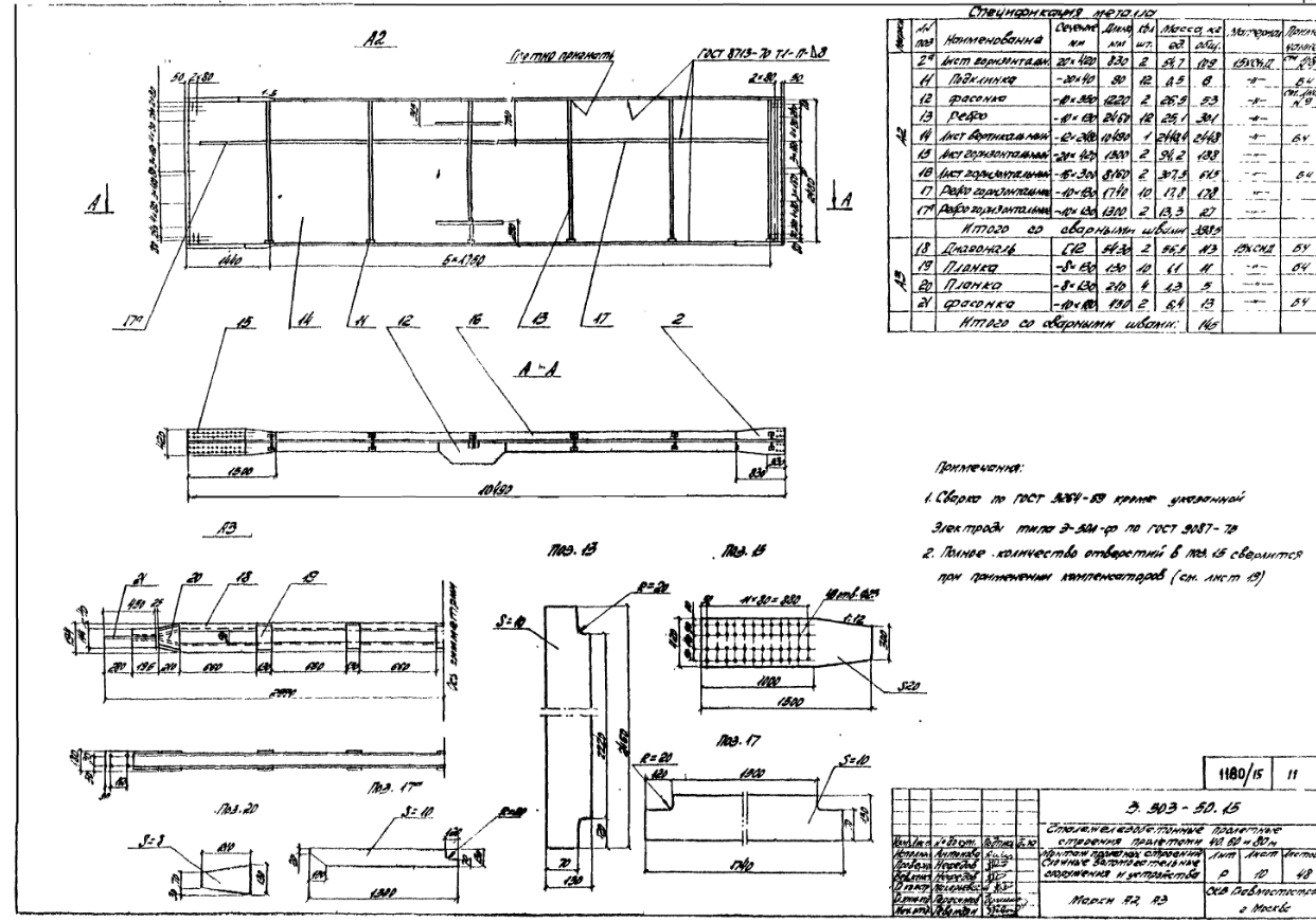 Помимо общей информации о возводимой конструкции в данном руководстве имеется детальное описание всех видов конструктивных узлов и вспомогательных элементов пролетной части. Также в выпуске 15 проектного документа З.50З.50 содержится графическая и описательная части конструкций, которые задействованы при возведении металлических мостов.