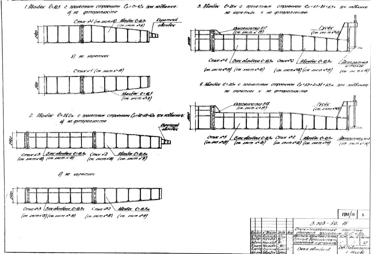 При проектировании и производстве аванбеков, в частности при устройстве разъемных и неразъемных соединений, в качестве руководства применяется проектная документация Ленгипротрансмоста Серии З.50З-50.