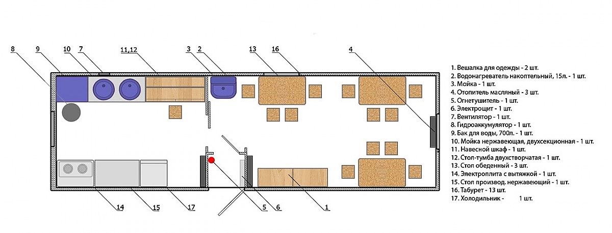 Бытовка кухня-столовая на 12 человек 8000х2500 мм